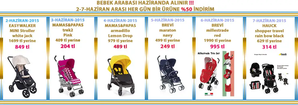 kızlar bir bebek sitesinde hergün 1 çocuk arabası %50 indirime giriyor.