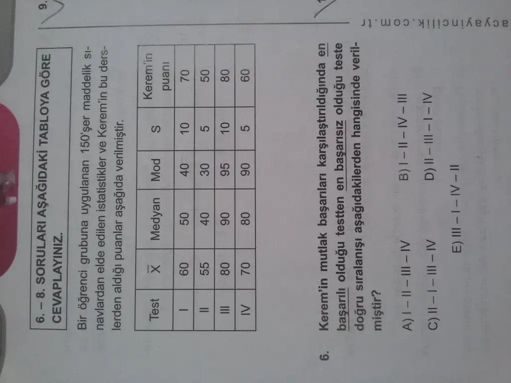 aynen ben de z puanına bakmıştım ama bulamayınca öğrencinin mutlak başarı yüzdesini hesapladım yine bulamadım. testin art ort na sadece grup hakkında bilgi edinmek için bakılmıyor muyducanım orada bize Kerem'in mutlak başarısını soruyor. Mutlak başarı dendiği an kişinin ya da sınıfın sadece aritmetik ortalamasına bakacağız.. Eğer bize Keremin sınıfa göre başarı durumu deseydi o zaman Z puanına bakardık..