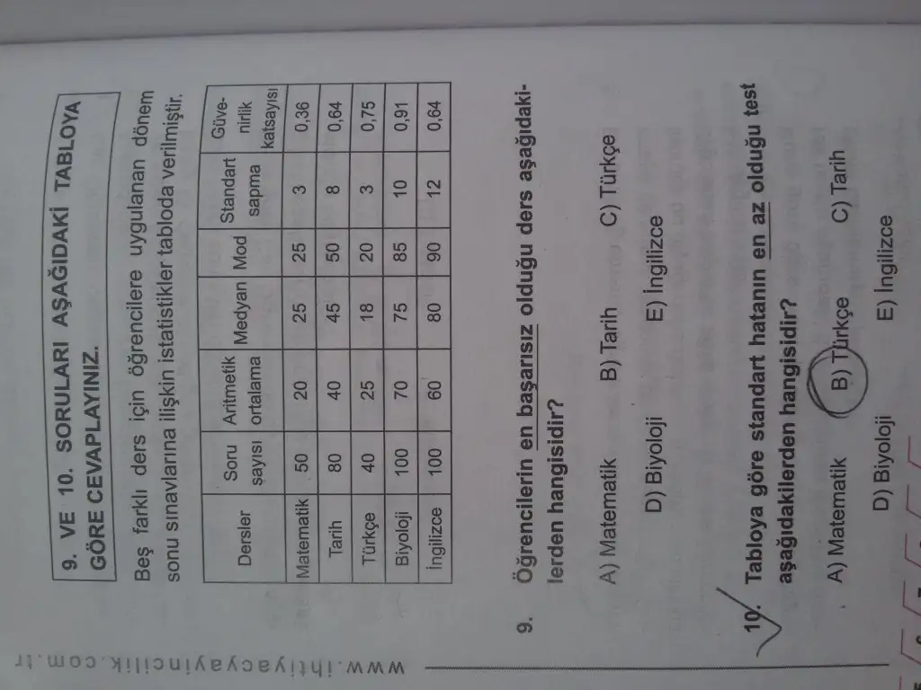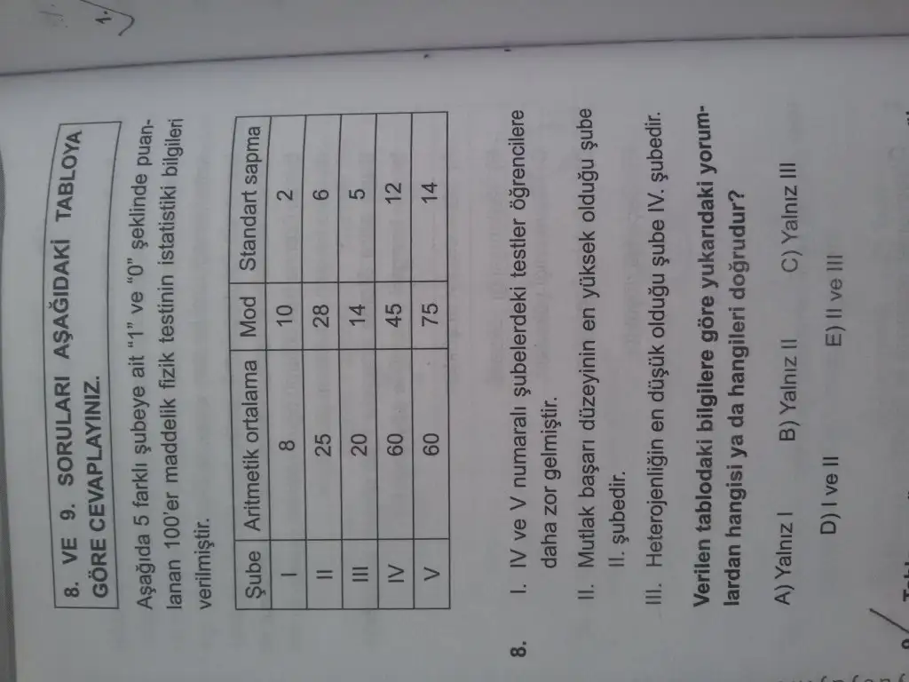 2 yanlış çünkü mutlak başarı sorulduğunda sadece aritmetik ortalamaya bakarız. Aritmetik ortalamalar eşitse standart sapması küçük olanı alırız.
