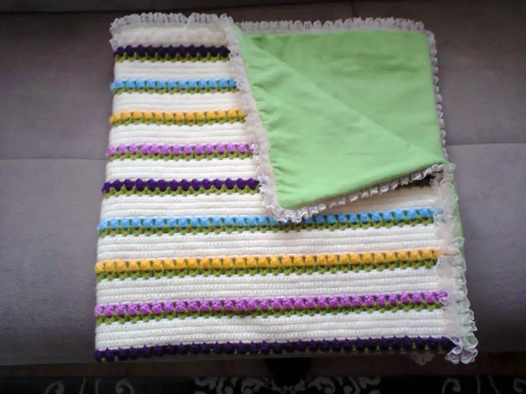 kızlar haftasonu kızımın battaniyesini bitirdim:Dyani bitmişti de altına pazen kenarına dantelini diktim nasıl olmuş bakın bakalım:)