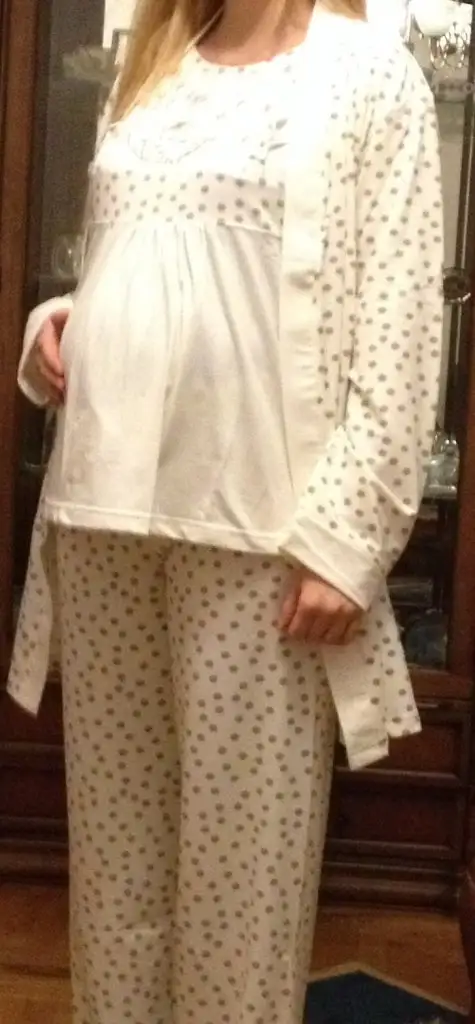 Günaydın kızlar :) umarım herkes iyidir ve herşey yolundadır. Dün lohusa pijama setimi aldım nihayet :) sizler içinde fotoğraf çektim. Bebeğimle son halimiz :)