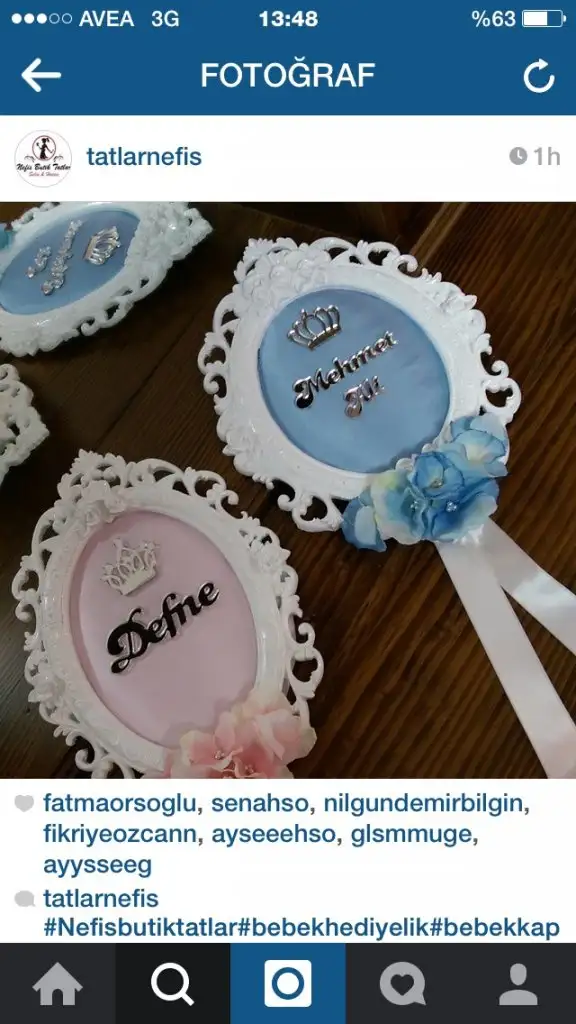 Aa çok sevindim canım ne güzel haberle dönmüşsün. Dün yorgun mu gittin acaba hastaneye. Eğer böyle iyi devam ederse kalp atışı normal de olur merak etme. Ben de bayıldım buna, nisan annesi almış çok beğenmiş :)Gittim canim daha iyiydi cok sukur normalde aksam da gidecektim iyi cikinca yarin gel dedi.. İnsallah o da iyi cikarsa belki iki uc gunde bir cagirir.. Normal dogumu cok istiyordum ama bi gidisle sezaryen diyecek sanki doktor.. Ne yapayim bebisim iyi olsun da hangisi hayirliysa oyle olsun.. Bu arada ben de haci serifyen alcam cikolata senin aldiklarin da cok guzelmis bi de ona bakayim gormemistim.. Bi de kapi susunu ne yapcan ben de bulamadim henuz..