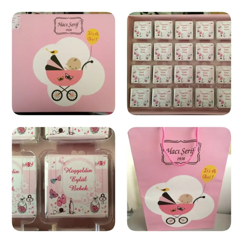 . Ben bu sekil yaptrdim canim. 48 tane var bu sekilde paket suslenmis ismi yazilmis halde. Cok uygun ve kisa zamanda geldiArkadaşlar hacı şeriften hangi bebek şekerlerinden aldınız acaba. İsim yazdırdınız mı bilgi verir misiniz.Bende almak istiyorum.