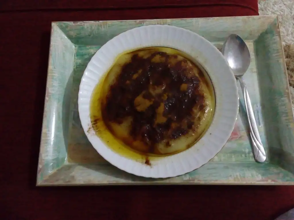 Eritilmis yagi tabagin uzerine dok. Uzerine tarcin. Istege bagli findik ceviz