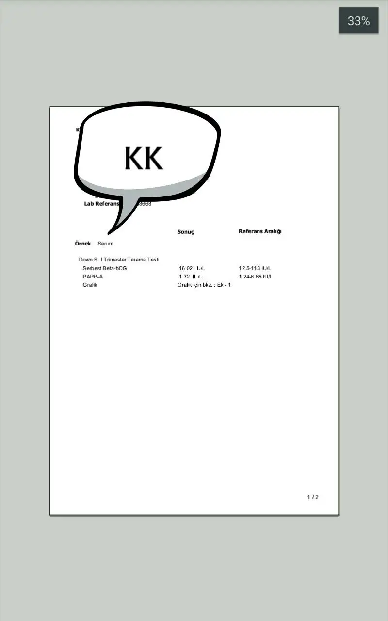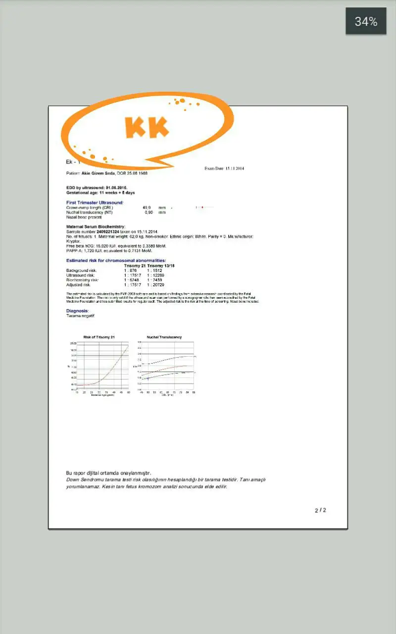 Bosuna canımızı sıkmayın ben öldüm öldüm dirildim, parça aldılar hiçbisey çıkmadı. Ki bu teste ense kalınlığı 0,90 diyor:) bosuna kendınze stress yapmayın bence.Canım sonucu paylaşıyorum ama internet ortamı die hastahane ve diğer bilgilerin üzerine karaladkm
