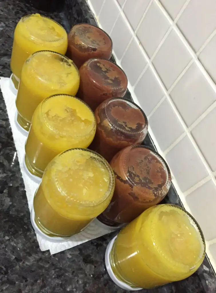 Genelde bilerek fezla yapıyorum:))) blendirdan geçirip kaynak kaynak kavanozluyofum hop konservelerim hazır oluyor :)) çeşit çeşit:)
