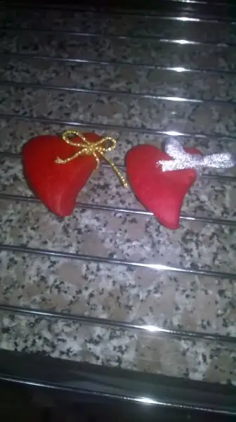 kırmızı gıda boyasıyla kalp kurabiye yaptım pişirmeden Bi kenarına pipetle delik açıp pişirdim sonra deliklere kurdele bağladım