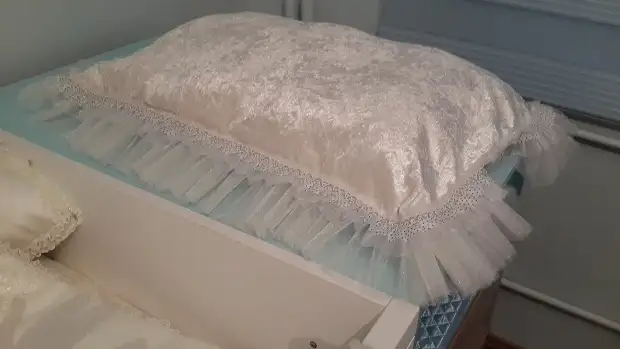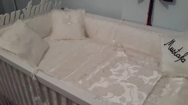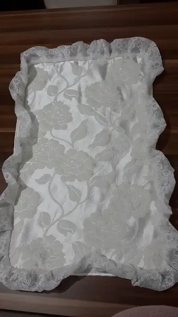 Diğer dikdörtgenimsi dantelli ise, hastanede bebek beşiğinin içine sermek için. Diğer tüllerini paylaşmıştım.