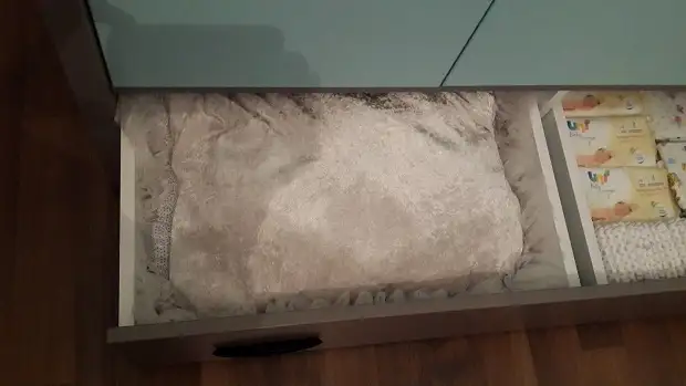İçinde tahtadan ve ince bir elyaftan başka bir şey yoktu. Bebiş yatamazdı yani.