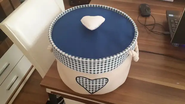 Orta boyuna kendim 2 kat keçenin içine karton koyarak dikip kapak yaptım. Bezlerini koymak için.