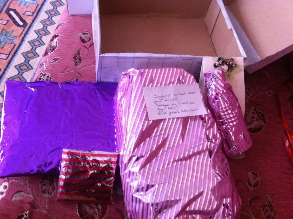 Eve kocaman bir koli geldi, canım benim nasıl özenle hazırlamış kutuları açarken heyecandan ölecektim, cok cici bir de mektup yazmış okurken gözlerim doldu