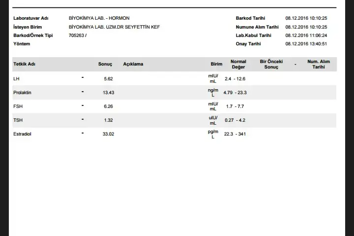 Onu deyince prolaktin yuksekliginden suphelenmisti ama oda normal cikti..