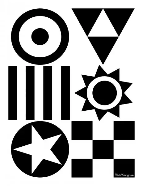 A Ankaaa bebeğin göz şaşılığı ile ilgili birkaç şey okumuştum.Belli bir sure şaşı ve gözleri numaralı gibi bozuk görürmüş bebekler.Onun için odaklanma alıştırması icin yurtdışında 30cm yakınına (bu beşiğinin kenarı olabilir) alıştırma kartonları asıyorlar.Bahsetmişdim daha önce sanırım. Siyah beyaz kontras basit grafikler. Aşağda örnek koydum kontras olması önemli ilk aylarda basit şekiller daha sonrasında surat, hayvan figürleri gibi hikayelştirme tanıtma şekilleri gibi olanlar.