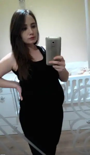 Bebisin hareketleri birkac gundur cok sakin. Minik minik ittiriyor. Onceden bam gum tepinirdi , yeri dar gelmeye basladi herhalde diye dusunuyorum. En son dogum pozisyonuna girmisti bas asagi.
