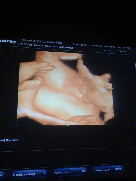 Maşallah diyelim teyzeleri :) bizim kızımızda biraz Tonbiş doktorum dana diye seviyor 31 haftalikken 2 kg idi 42 cm boyu da. Şekerden şüphelendiler ama sukur onunla ilgili değilmiş sanirim benim fazla meyve yememden oluyor. Böbreğinde de sağda buyume var Dedi bakalım bir daha kı gidişimize insallah azalma olmustur. O resimde de bacağını emiyordu yavrum :) Rabbim hepimizin hayirlisiyla kucağına almayı nasip etsin