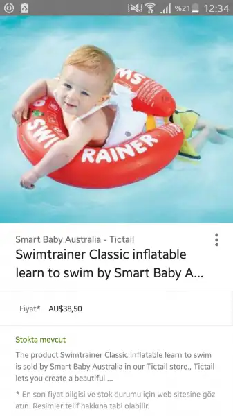 Canim bunlar guzel ama bana cok pahali geldi. Siradan ustu guneslikli bir urun de gayet isini gorur sanki. Tabi ki sen bilirsn ama biz oyle yaptik.Ben de oturaklı simit almaya karar vedim canım. Sonra swimtrainer diye bi ürün gördüm herkes çok memnun 4 yaşa kadar da kullanilabiliyormus belki bundan alırım. Bebeklerin yüzmeyi öğrenmesine de yardımcı oluyormuş. Eki Görüntüle 2044615