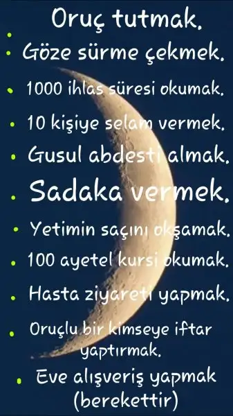 Aynen öyle canım bu gün mutlaka güsül abdesti almalıyız inşaallah değerlendirelim... birde bşr kısım market alışverişi yapalım inşaallah ben evde olunca selam verecek insanı sadece sanal alemde buluyorum artık aşurenin gerçeğini bekliyorum komşularımdan inşaallah gelir