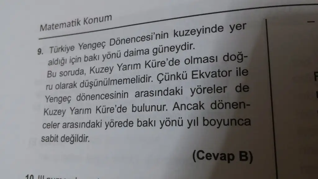 Çözümde bu yazıyordu kizlar ama emin olamadım işte diger bir kitaptada kuzeyde yer olmasindan diyor anlayamadım ya