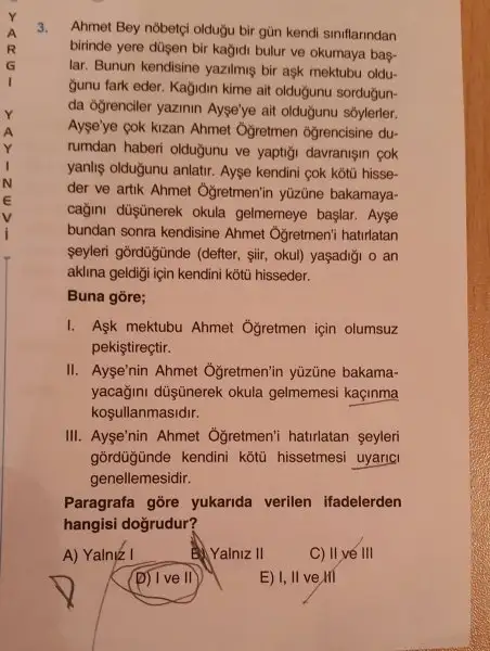 Evet canım bi arkadaşım daha bikaç haftadır konuştuğu, bi kere gördüğü biriyle bi aya nişanlancak. Benim de 4 yıllık bi ilişkim var, bakalım biz daha kaç yıl beklicez. Benim de ilk hedefim atanmak, kendimi biliyorum atanmadan evlensem de mutlu olamıcam. İnşallah sedefim, mucize gibi bişi olur benim için. Seneye bu kadar bile alabilcemi düşünmüyorum. Artık bildiğim her şey birbirine girmiş durumda, hiçbir şeyden emin olamıyorum, çoğu şeyi de ya bilmiyorum ya da yanlış biliyorumTamam holofum bn de hocayi ve seni baz aliyorum o zaman :) holofum bn de 10 yildan sonra evleniyorum, utaniyorum artik bunca yil olunca. Ve gel gör ki hala belirsizlikler var. Cevremde 6 ayda tanisip evlenenler, pat diye is sahibi olanlar, daha az emek verip atananlar var. Yine de bugunumuze şükür diyorum. Ama hayat bize ne zaman gulcek merak ediyorum. Ancak atanmak kurtaracak bizi bu durumdan, ondan eminim. Bu yüzden derslere sarilmaliyiz.
