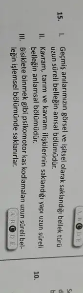 İşlemsel bellek prosedürel diye parantez içinde belirtmiş