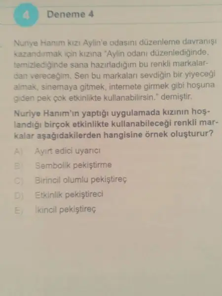 Canım acaba sembolik , etkinlik pekiştireci de var ikincil pekiştireçleri kapsadığı için olabilir miCevap e mis. Ben sembolikle ikincil arasında kalmistim. Sorunun basi sembolik sonu ikincil. Bilemedim, bilen varsa yardiiiimmmm :)