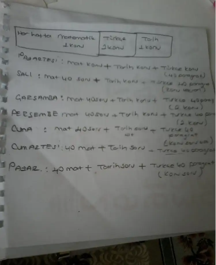 günlük 3 ve 4 saat arası çalışıyorum canımCnm bu programa gore gunde kac saat ders çalışıyorsun bende nasi bi program yapmam gerektigini arastiriyorum suan