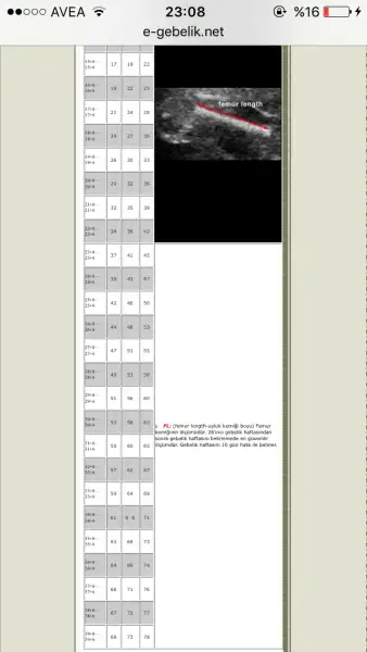Ultrason kagidinda 3 deger altalta yazar ya genelde, ilki kafa çevresi ölçümü ve ona göre haftası, ikinci göbek cevresi, ucuncusu de uyluk kemigi olcusu(fl yazan,bebisin boy ölçüsünü vermesi için 7 yle çarptığımız), her birinde ayri yazar, iste ilk yazan kafa olcumunde benimki de koca kafali cikiyo :))))) 2-3hafta önde benim bıdığın da kafasi