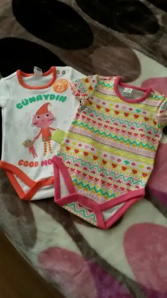 Bebek için:* alttan ya da yandan çıtçıtlı kısa kollu body 6-7 adet (0-3 AY)