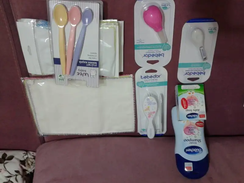 * banyo termometresi, vücut ve baş şampuanı (sebamed iyisi)