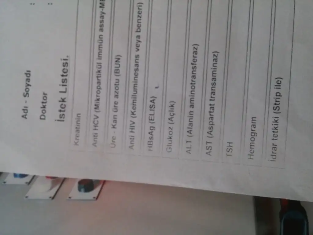 Bak bu testleri yaptılar. idrar dışında. Sonuçları bana verdikleri kod ile yarın istanbul halk sayfası web sitesinden öğrenebilirsiniz dediler.Canim saglik ocaginda yaptirdigin testler hemogram glukoz tsh ve hbsag anti hbs mi bana bunlarin disindakileri yapmadilarda rutin yapilanlar bunlarmis oyle dediler