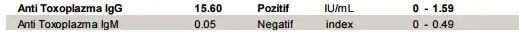 Negatif + pozitif olsaydı eğer: Tersine IgG negatif, IgM pozitif ise hastasınız, tedavi olmalısınız, olmasanız dahi IgG nin tekrarlanan test sonucunun pozitif olduğunu görmeniz gerektiği anlamı ortaya çıkar. Eğer her iki değer de negatif ise; daha önce toksoplazma ile hiç karşılaşmamışsınız ve riske açıksınız demektir.