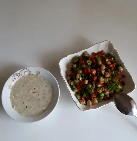 Oglen;1 kase sehriyeli tavuk corbasi ve nohut salatasi