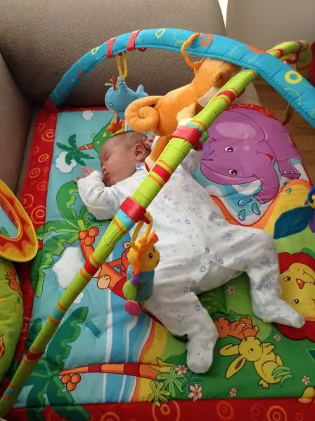 İki saattir uyutmaya çalıştığım yaramaz böcük , oyun halısını kurdum bakalım oynayacak mı diye içine koymamla uyuması bir oldu