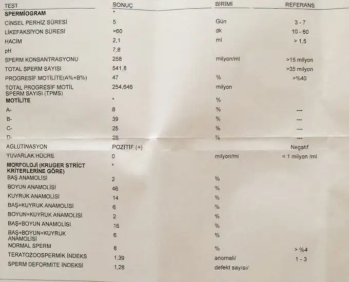 Kızlar eşimin sperm testi sonuçları bir bilginiz varsa yorumlar mısınız ?