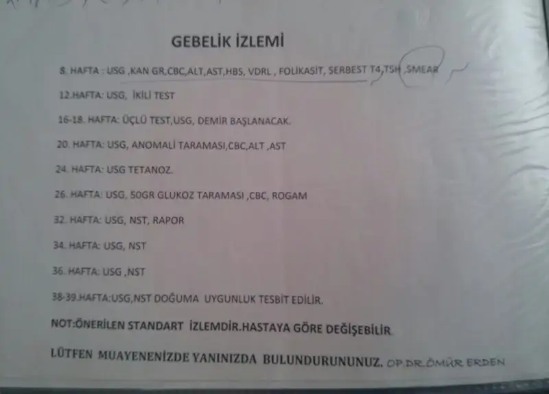 Onceki hamilelik dosyamda boyle bir kagit var kizlar. Nette de vardir muhtemelen ben yine de sizinle paylasayim dedim