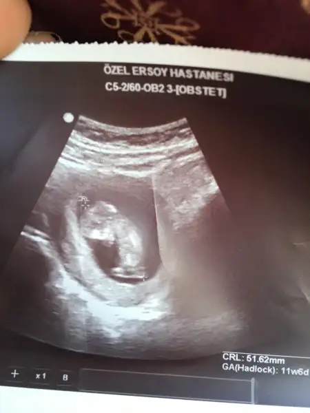 Benimde 11+1 olması lazım 12 gösteriyor. Ay senin ki düz yatıyor benimkinin başı baksanaKızlar çok şükür 1.6 çıktı sonuç doktor çok iyi dedi kan verdim haftaya salı yada çarşamba çıkacak normalde 11+5 olmam lazım doktor 12+1 dedi ayrıca cinsiyet tahmini varmı :)