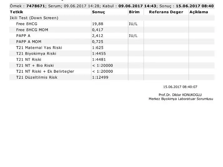 canım ben anormal bir değer görmedim, 250 den küçük rakamlar olunca riskli sayılıyor diye biliyorum,Arkadaşlar ikili testimin sonucunu paylaştım az önce ama kimse görmedi sanırım. Anlayan arkadaşlar bi bakabilir mi şuan seminerdeyim doktora anca 2 den sonra gidicem aklım testin sonucunda