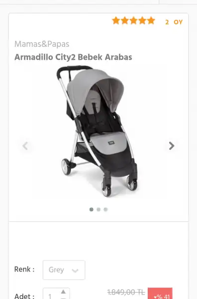 Canım ancak vakit bulup ebebek mağazasına uğradık sabah sabah ve düşündüğüm arabaları denedim tek tek. Chicco ohlala bebek için diğerleri kadar konfor sağlamasa da hiç fena değildi bence, çok hafif , uygun fiyatlı ve kullanışlıydı ancak 15 kg mış kapasitesi bu nedenle tercih etmedim. Senin de belirttiğin gibi mamas&papas daha hafifti ancak benim cadı o kadar araba içinde en çok maclaren techno xt de rahat etti gibi geldi gıdı çıkmadı ayaklarını istediği gibi uzatabildi. Eşim de bu daha rahat bunu alalım diye tutturunca maclaren techno xt aldık çıktıkKızlar geçen gün baston/kabin boy bebek arabası konuşulmustu. Biz kızıma dogumdan once maxi cosi stella almistik malum travel sistem ve ben tek iken kullanmakta epey zorlaniyorum. Bugun kabin boy diye tabir edilen tek elle 3sn de açılıp kapanabilen hafif ancak içi geniş kızıma yine aynı konforu saglayabilecek bebek arabası aldık. Mamas&papas armadillo city2. 872tl. ebebekte büyük indirim var hicbir magazalarinda kalmamıs ist merkez depoda 14tane kaldigini soylediler ordan siparis edildi. Epey arastirdim memnun kalacagimi dusunuyorum. Travel zor deyip ikinci bebek arabası arastiranlara tavsiye ederim.
