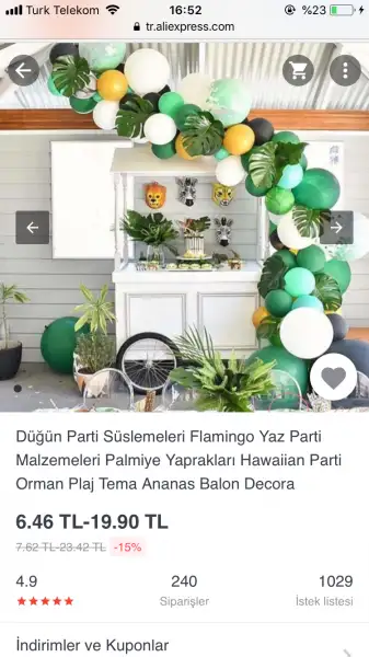 Kahvaltı fikri çok güzelmiş :) cuma gününe geliyor bizim. Pazar günü bi mekanda kahvaltı şeklinde çok güzel olur ama eşimi ikna edemem yüzde 90. Evde olacak galiba ben de partidünyası diye bi siteden konseptlere bakıyorum birkaç gündür. Güzel pastalar en az 200 zaten süslemelerle 500 ü bulur gibi. Aliexpresten de folyo balon alıcam orda uygun