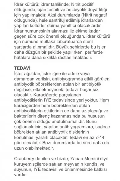 Negatif çıkmıştı canım iki kez. Şimdi kültür bekliyoruzNitrit ne çıkıyo tahlillerde?