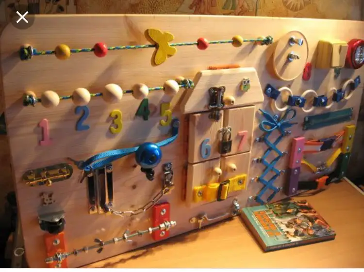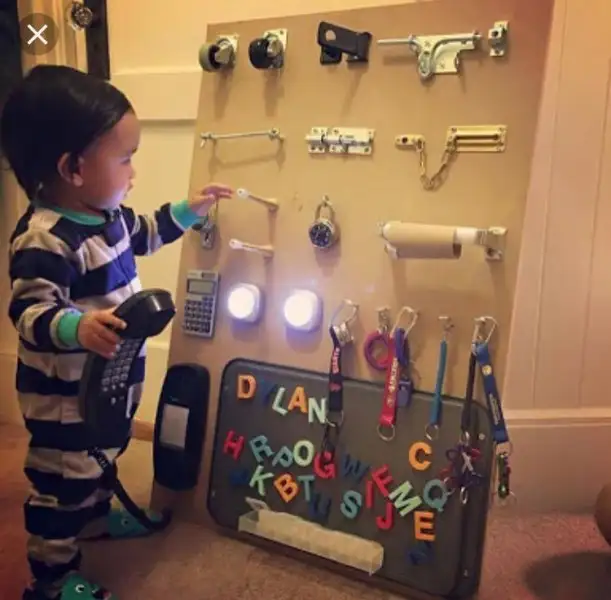 Kızlar benimki ışık anahtar kapı şarj aleti hastasıydı. Uyanınca ilk yaptığı iş avizeyi gösterip ap diye bağırmak. Ben de aktivite panosu yapmaya karar verdim. Bugün Koçtaş’tan malzemeleri aldım. 50x60 sunta kestirdim. Kapı kolu, düğme(anahtar), basit elektrik devresi, eski tip zincirli kapı kilidi, sandalye tekerleği aldım. Bunları tahtaya yerleştireceğim. Ek olarak cırt cırt, fermuar, makara, anahtar falan ekleyeceğim. Düğme(anahtar) yi açıp verdim eline basıyor Işık’lar yanmıyor aaaa diye bağırıyor:) Yapacağım activity board/toddler board olarak geçiyor tabi Türkçe aktivite tahtası-panosu şeklinde ama İngilizce daha çok örnek geliyor önünüze ekliyorum. Düşünen olursa fikir olsun.