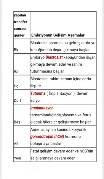 Bana 2 embriyo transfer edilmişti. Kromozom incelemesi yapılmadı embriyolara. Test için bekleyemedim. 7.gün evde bulunan ovulasyon testlerinden birini denedim. Burda forumda okumuştum ovulasyon testlerinin gebeliği tespitte kullanıldığını. Gerçekten de iki koyu çizgi belirdi. Ertesi gün erken gebelik testi yaptım. Onda ikinci çizgi çok az, belli belirsizdi. Ama ben nedense bu ikinci testin hatalı olduğuna inandım. 9.gün de gidip kan verdim ve kesin sonucu öğrendim :)