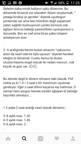 6-9 ay bebekler kaç saat uyanık kalmalı peki.mesela dokuzda gözünü açtı.ne zaman uyutmalıyım tekrardanTel bozuk o yüzden bu şekilde yazıyorum . Yukrid ki yöntemi dene cnm. Ben şöyle yapıyorum. Sbh uyandı . iki buçuk st sonra ody götürüyorum ltini değişip nni dinletiyorum . Öpüp kokluyorum gulumsemesini sgliyorum . Pencereden dışarı bakıp emziriyorum. Toks emzirmiyorum. Uyku moduna giriyor. Ninniyi değişiyorum. Elektrik süpürgesi ve pis pis sesi bıroikte olan videoyu dinletiyorum ve beşiğinde slliyorum. Durmaz ise kucgimd skinlestiriyorum. Veya beşiğinde opuyor konuşuyorum. Slliyorum ve eee diyorum uyuyo. Üç st içinde uyumuş oluyor. Eğer elli dkikdn Z uyursa tekrar salliyorum. Rutin ve uyanık KLM sürelerine dikkat etmek erekiyor. Memede uyurs muhkkk hafiften uyansın öyle ytir ve sll . Kusur bkm tel bozuk. Üç beş güne yenisi gelecek. Kesinlikle denemelisin . Uykusu üzdü ve dh rht yatiyor. Sllmyi d yvs yvs zlticm. Bu syde hmktn vazgecirebilirim ben. Bebiş hrketlenmeden dene bence. Sonra sllmyi bırakırsın düzen oturunc