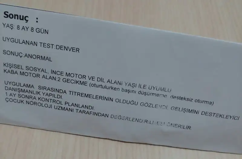 Goz temasini,atilan oyuncagi takibi, el cirpmayi,oyuncagi alip birbirine vurmayi,gulmeyi,dinlemeyi,uzum kurusunu kavrayip agzina goturmeyi gecti ama.