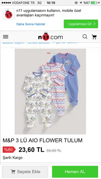 Kızlar, N11 de alışveriş yaptığım mamaspapas satıcısında 3 lü tulum 23 liraya inmiş. Kızı olacaklar değerlendirebilir.