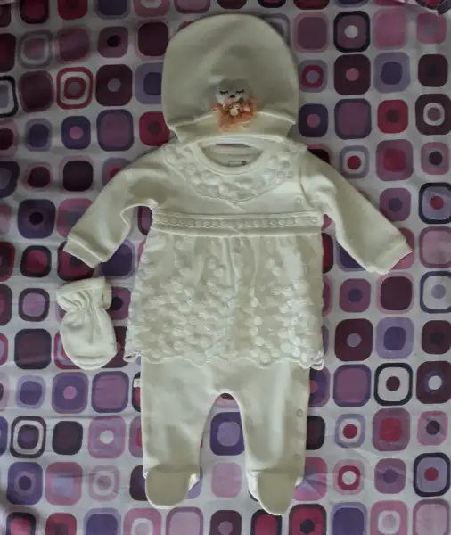 Selam kızlar. Benim kayınvalide de coştu dün maaşallah baya bi eksikleri tamamladık. Pembe bir şey almayacağım diyordum güya ama genelde pembe aldım : ) Yalnız hastane çıkışı beğenemedim hiç. Her yerde aynı modeller aşırı cicili bicili. Onun yerine şöyle bi kombin yaptım fotoğraf çekilirken giydirmek için. İçine zıbın ve patikli alt giydiririm aynı renk. Bir de şapka yerine saç bandı kullanırım belki. Olur mu sizce? Zaten bir kadife, 2 pazen, bir polar, 2 de örgü battaniyesi oldu. Bol bol eldiven, önlük, iç-dış zıbın, patikli alt, çıtçıtlı badi aldık. Ekstra hastane çıkışına lüzum var mı bilemedim. 5 li setlerden de 3 tane aldık. 10 lu beğenemedim sanırım almicam.
