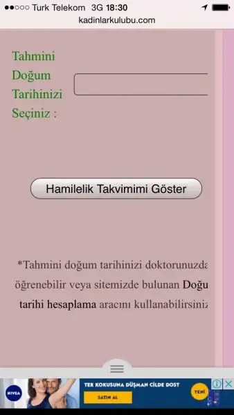 Ben de telden giriyorum yazacaktım.şimdi hamilelik takvimi ne tıkla ordan doğum tarihini bul diyor oraya tıkla son adet tarihini gir sana tahmini doğum tarihini verecek.daha sonra kişisel bilgilerine gir orda hamilelik takvimi diye kutucuk var oraya bu tarihi gir.sonra da en altta onay tuşuna basTıklıom tıklıom başka bi sayfa açılıo