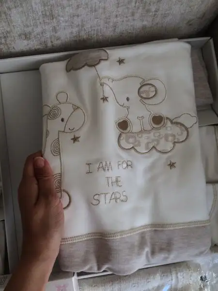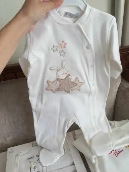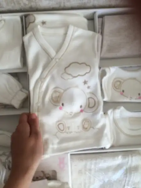 Kıyafetler 0-6 ay ağırlıklı. Ama çok beğendiğim şeyler olduğunda herşeyi 0-6 ya yığmak istemediğim için 1 yaşına kadar ufak tefek şeylerde aldım. Hastane çıkışı idil baby'den 20'li. Nevresim battaniye english home ve merinostan. kuğulu tulumu ve fotosu olmayan bırkac tulumu daha aziz bebeden aldım çünkü aziz bebede yenidoğan bebek kıyafetlerinin diğerlerine göre daha uzun olduğunu duymuştum. 3'lü takımlar ve 4'lü bir hastane çıkışı carters'dan. Çok sevmediğim halde birçok şeyi pembe renk almışım