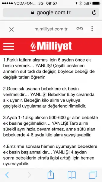 Aynen benım demek istedıgın de o nasıl aylarına göre hareket edıyorlar dönmeye başladılar şimdi oturmaya çalışıyorlar yani hazır olduğunda çocuk o sinyali veriyor yemeyen çocuk zorlanmamalı ama ben şimdi patateste versem benim bebegım yer hemde beni Emer çok iştahlı.doktorumda bunu farkettı erken ek gıdaya geçmemi soyledı demekkşBenim bi tanidigim var daha 40 cikmamis bebege pekmez sulandirip iciriyorlar yediklerinden veriyorlarmis. Sok oldum bunu duyunca. Bende 6 ayi beklemek istiyordum ama beklemedim basladim tattirmalara ve dedigin gibi hergünde vermiyorum. Bebegim bana sinyali verdi hazir biseler yemege diliylede itmiyor kasigi yaklastirinca heycanlaniyor seviniyor bisey yicek diye :)