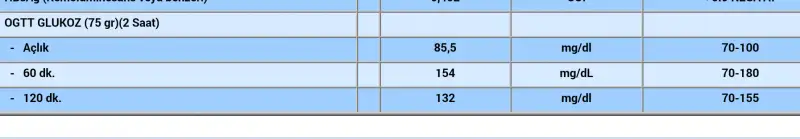 Canım 75 lik yaptırdım bende, olması gerekenden yüksek görünüyor değerlerin,benim de ilk saatim yüksek çıktı, uygun beslenme ve takip dedi doktorlar (-arkadaşım olan doktor daha üstüne durdu ama kendi doktorum düzgün besleniyorsun zaten bişe olmaz dedi ki kendisi prof,) sıkıntı yapacak bişe yok, ben sabah akşam ölçüyorum, ve karbonhidrata dikkat ediyorum sıkıntı olmadı şimdilik